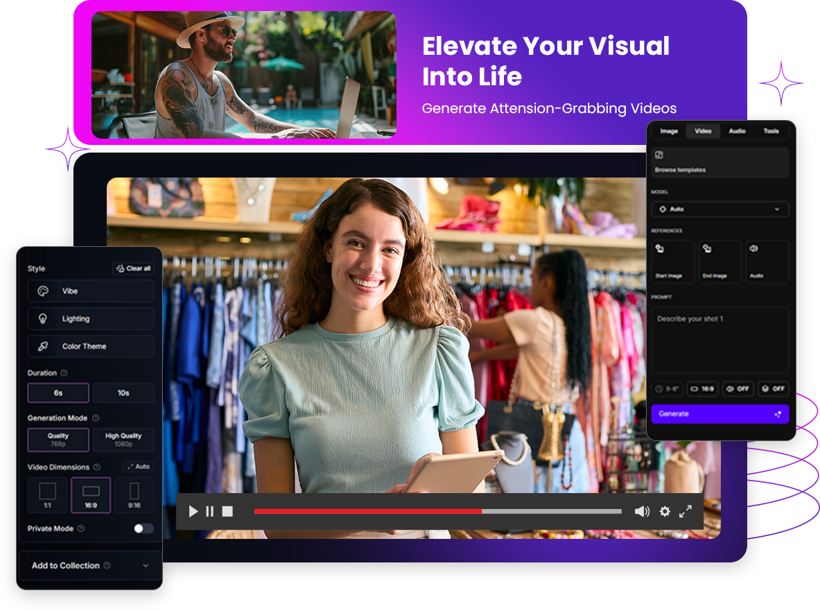 - Generates videos tailored to their goal